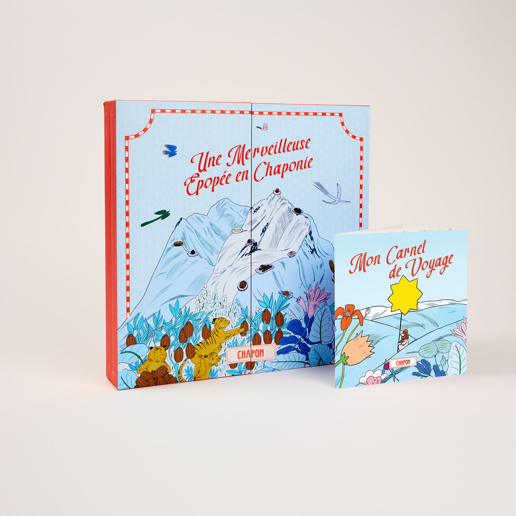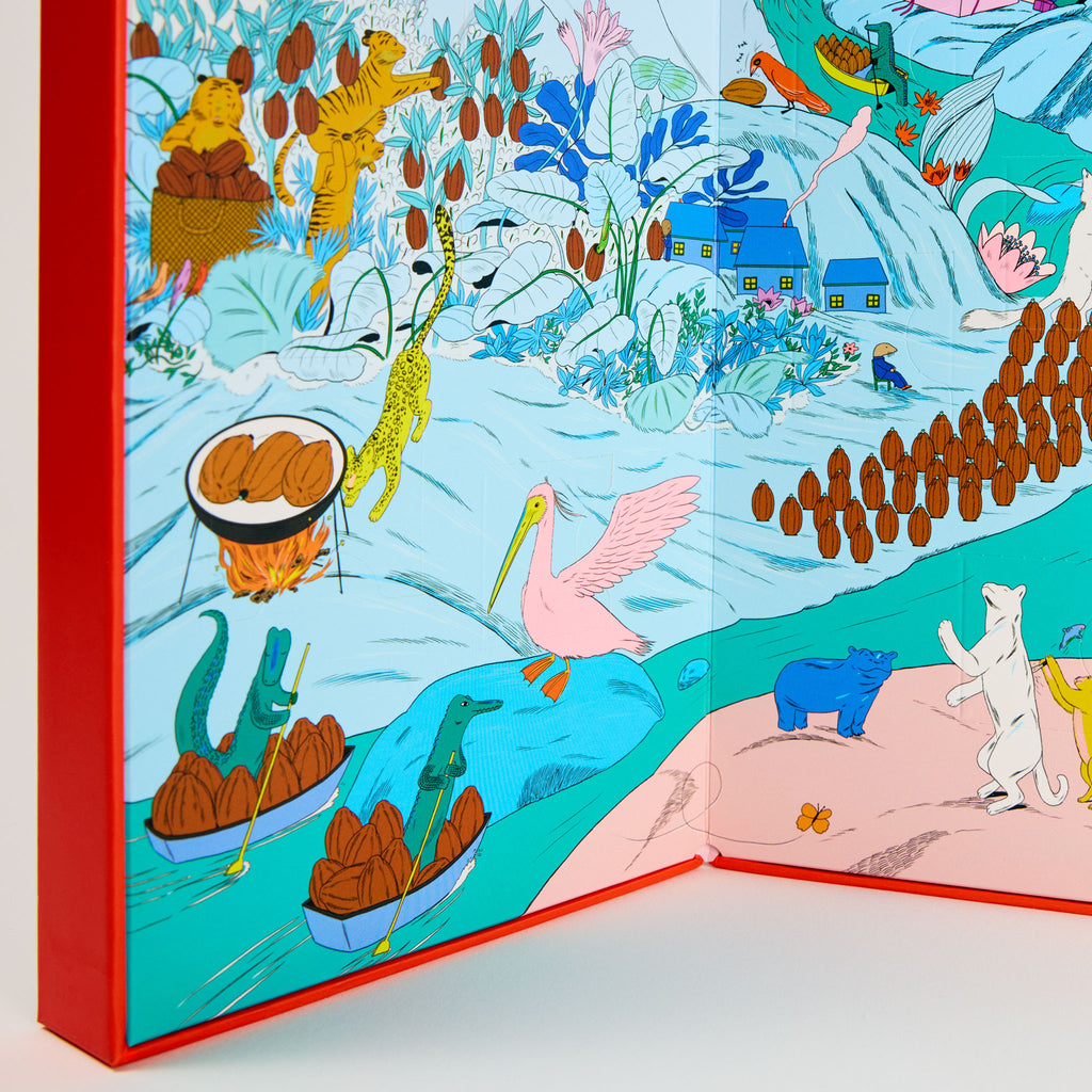 Le calendrier de l’Avent se transforme en une carte géante du monde merveilleux de Chapon. De la forêt, enchantée des cabosse aux montagnes sucrées de praliné, guidés par des animaux malicieux les explorateurs, découvriront chaque jour, un monde d’aventures, mais surprise et gourmandise.