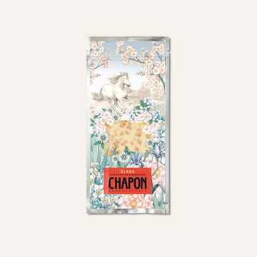 Chocolat blanc au yuzu garni d'éclats de noisettes grillées.